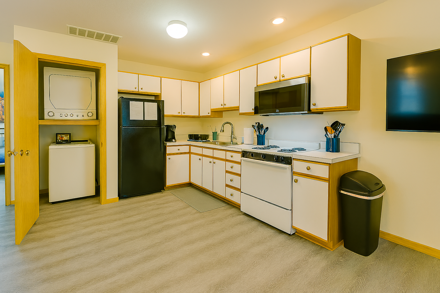 - Kitchen Space where guests can cook their own meals